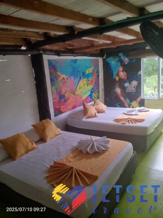 Tenemos habitaciones dobles, triples y familiar. Todas con ventilador, energia y una decoracion tipica que las hace comodas y agradables para pasar unas lindas vacaciones frente al mar azul turquesa de esta magica y reconocida playa del caribe colombiano.